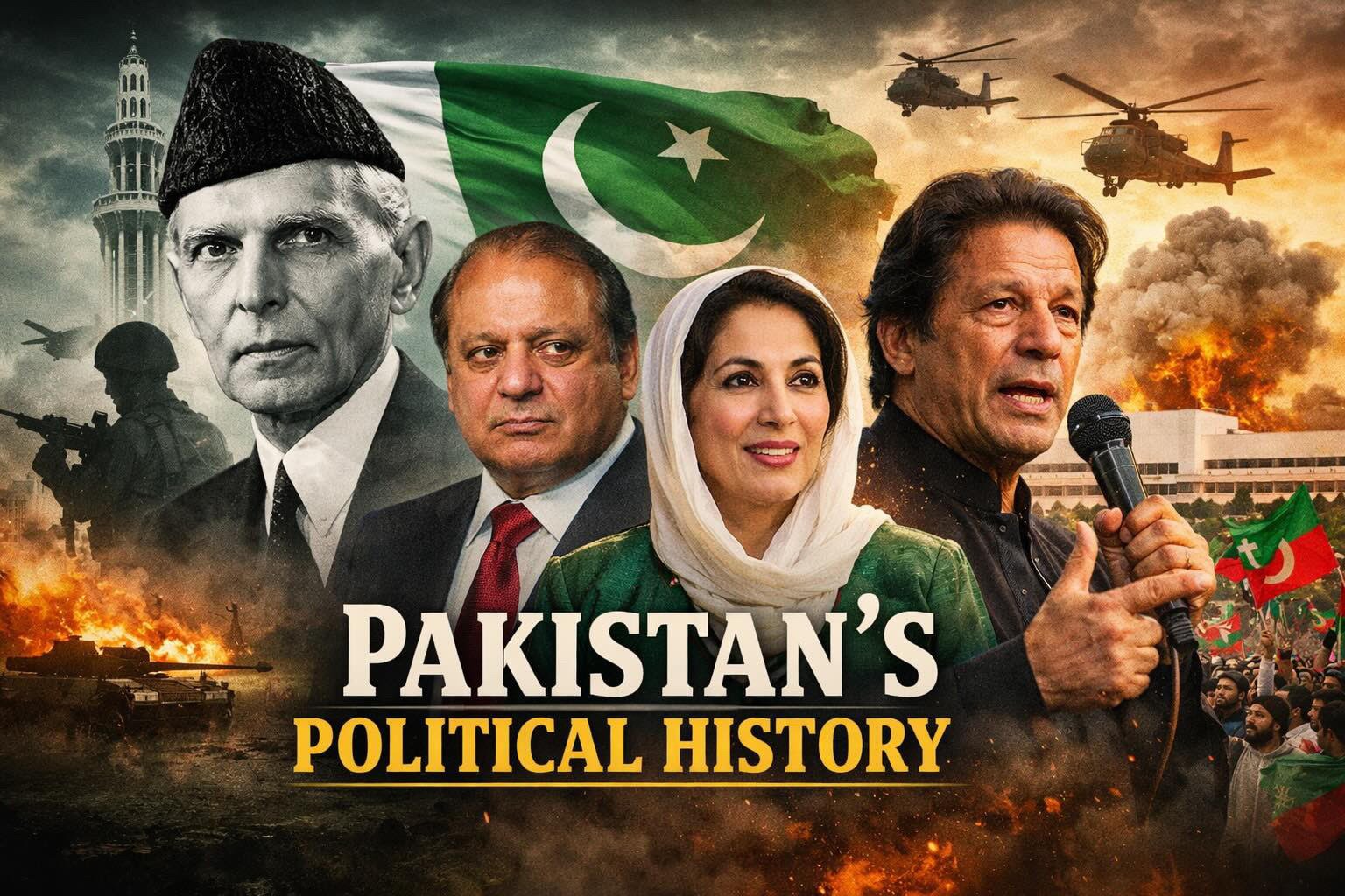 From Muhammad Ali Jinnah’s democratic vision to repeated military interventions, from political dynasties to